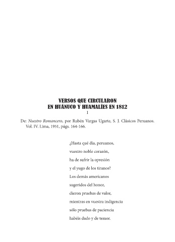 De: Nuestro Romancero, por Rubén Vargas Ugarte, S. J. Clásicos Peruanos.