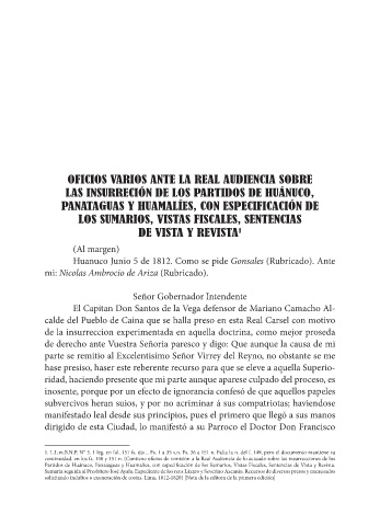 Huanuco Junio 5 de 1812. Como se pide Gonsales (Rubricado). Ante