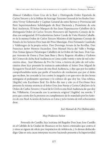 del Crimen de dicha Real Audiencia en Lima y julio veinte y siete de mil ocho-