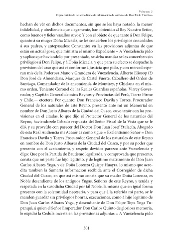 Noble desendiente de los antiguos Yngas, Señores de este Reyno, y tenida y
