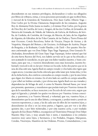 chuhualpa, desendiente del Gran Topa Ynga Yupanqui, Señor natural que fué