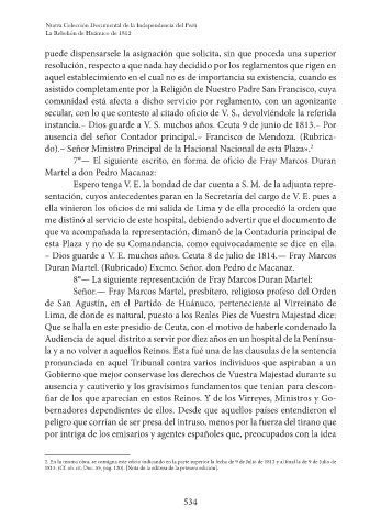 8°— La siguiente representación de Fray Marcos Duran Martel: