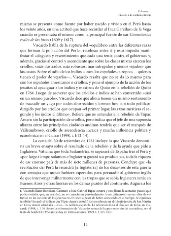 cardo (1998, t. I: 5). Sobre la información de Vizcardo acerca de la gran rebelión del surandino, ver el
