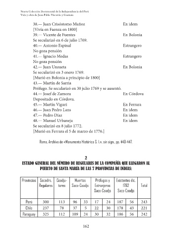 ESTADO GENERAL DEL NÚMERO DE REGULARES DE LA COMPAÑÍA QUE LLEGARON AL