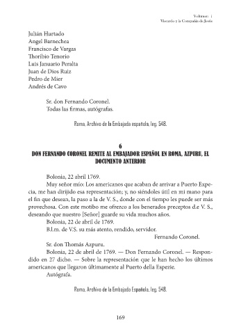 Bolonia, 22 de abril de 1769. — Don Fernando Coronel. — Respon-