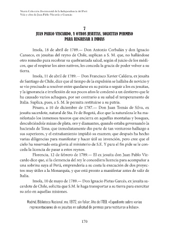 JUAN PABLO VISCARDO, Y OTROS JESUITAS, SOLICITAN PERMISO