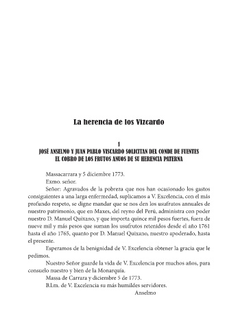 JOSÉ ANSELMO Y JUAN PABLO VISCARDO SOLICITAN DEL CONDE DE FUENTES