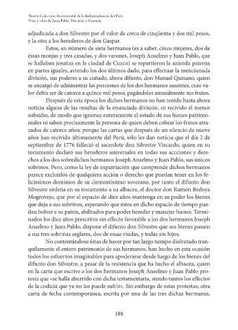 se hallaban jesuítas en la ciudad de Cuzco) se repartieron la azienda paterna
