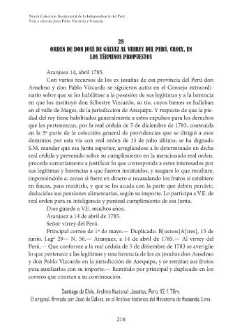 ORDEN DE DON JOSÉ DE GÁLVEZ AL VIRREY DEL PERÚ, CROIX, EN