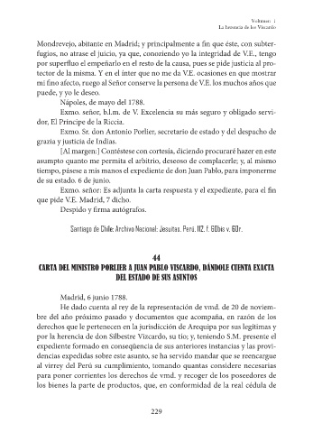 CARTA DEL MINISTRO PORLIER A JUAN PABLO VISCARDO, DÁNDOLE CUENTA EXACTA