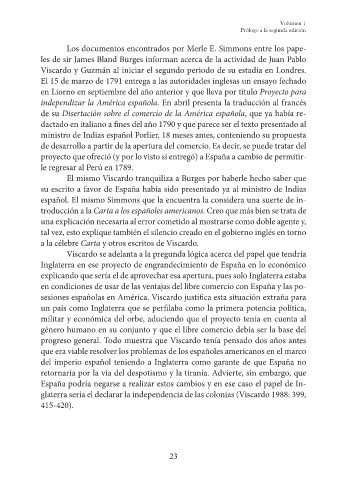 glaterra sería el declarar la independencia de las colonias (Viscardo 1988: 399,