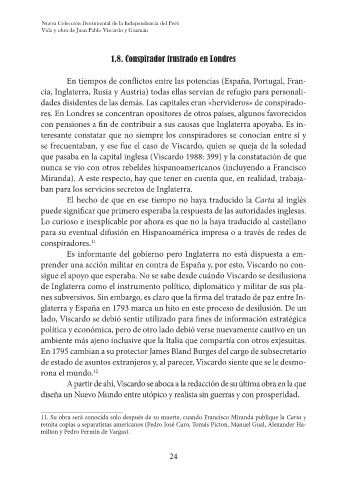 que pasaba en la capital inglesa (Viscardo 1988: 399) y la constatación de que