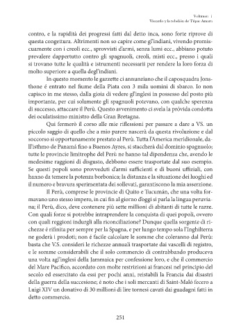 ne goderà i prodoti; non é facile calcolare le somme che coleranno dal Perù: