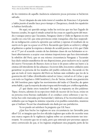 suerte en lo que va a pasar en el Perú. Recuerdo que Quito se sublevó y obligó