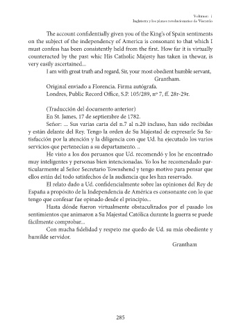 ticularmente al Señor Secretario Townshend y tengo motivo para pensar que