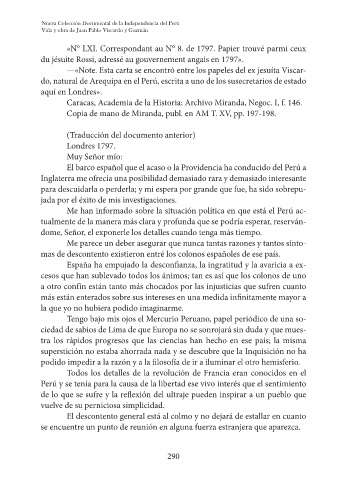 —«Note. Esta carta se encontró entre los papeles del ex jesuíta Viscar-