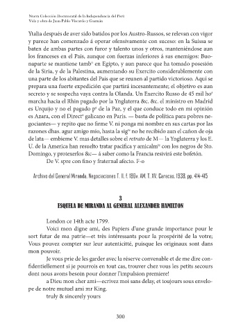ESQUELA DE MIRANDA AL GENERAL ALEXANDER HAMILTON