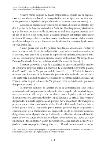 ción, arrivo Miranda a Londres. Su reputación, sus amigos, sus talentos, etc.,