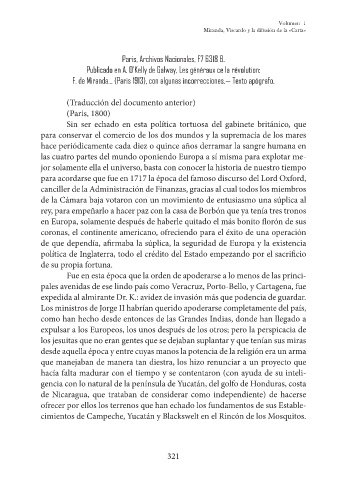 F. de Miranda... (Paris 1913), con algunas incorrecciones.— Texto apógrafo.