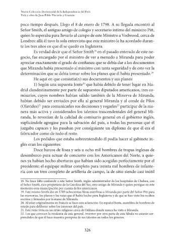 19. Este mismo Smith dio en 1789 ochocientas libras esterlinas a Miranda por parte del Señor Pitt para
