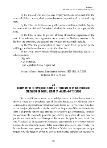 1806) la copia de la proclama que el Traidor Francisco de Miranda, Jefe y