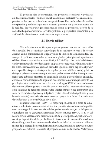 reconocer en Viscardo una orientación elitista y jerárquica, Miguel Maticore-