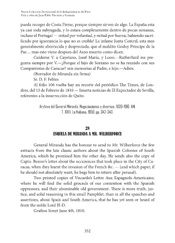 ESQUELA DE MIRANDA A MR. WILBERFORCE