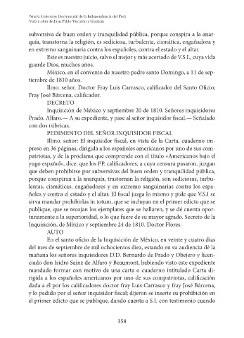 Inquisición, de México y septiembre 24 de 1810. Doctor Flores.
