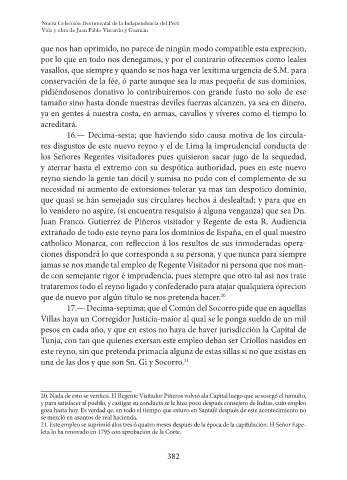 20. Nada de esto se verificó. El Regente Visitador Piñeros volvió ala Capital luego que se sosegó el tumulto,
