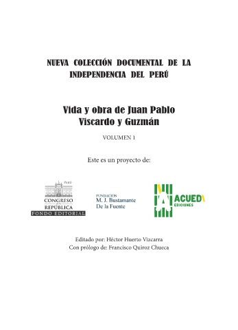 NUEVA COLECCIÓN DOCUMENTAL DE LA INDEPENDENCIA DEL PERÚ Vida y obra de Juan Pablo Viscardo y Guzmán VOLUMEN 1 Este es un proyecto de: Editado por: Héctor Huerto Vizcarra Con prólogo de: Francisco Quiroz Chueca