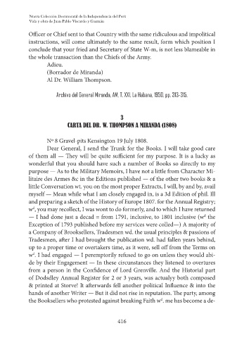 CARTA DEL DR. W. THOMPSON A MIRANDA (1808)