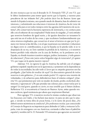 de otro monarca que no sea el deseado Sr. D. Fernando VII? ¿Y cree V.S. que