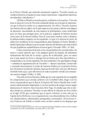 duce desde un comienzo, Viscardo va más allá de lo aducido por los criollos