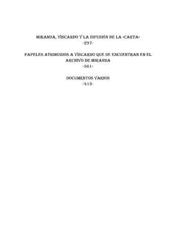 miranda, Viscardo y la difusión de la «carta» -297- PaPeles atribuidos a Viscardo que se encuentran en el archiVo de miranda -361- documentos Varios -413-