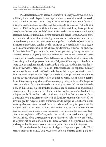 político y literario de Túpac Amaru que abarca los dos últimos decenios del