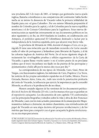 42. Ha estudiado con especial penetración la influencia de Viscardo en los escritos de Miranda, el histo-