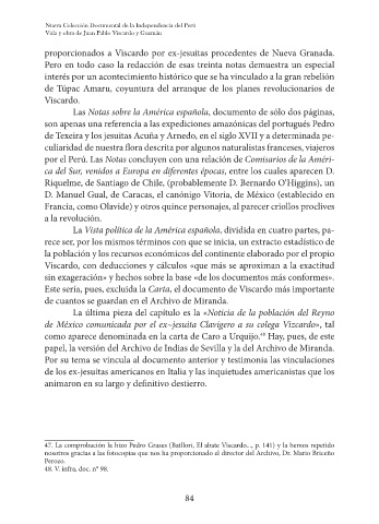 47. La comprobación la hizo Pedro Grases (Batllori, El abate Viscardo..., p. 141) y la hemos repetido