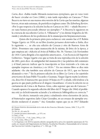 americanos de Juan Pablo Vizcardo y Guzman, Vargas Ugarte repite la referen-