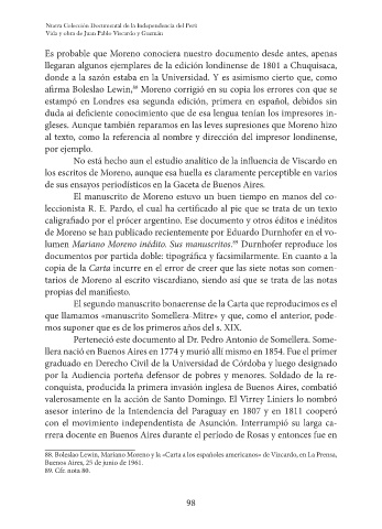 88. Boleslao Lewin, Mariano Moreno y la «Carta a los españoles americanos» de Vizcardo, en La Prensa,