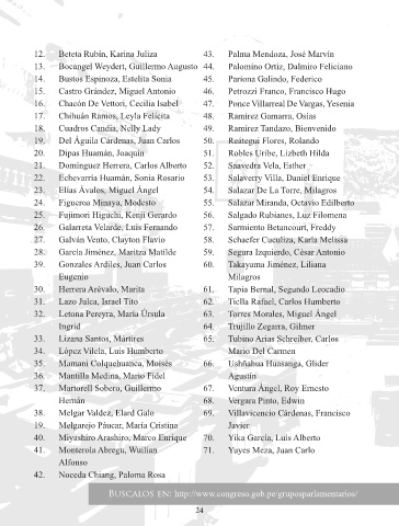 25. Fujimori Higuchi, Kenji Gerardo 56. Salgado Rubianes, Luz Filomena