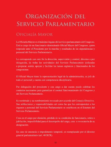 La Oficialía Mayor es el máximo órgano del servicio parlamentario del Congreso.