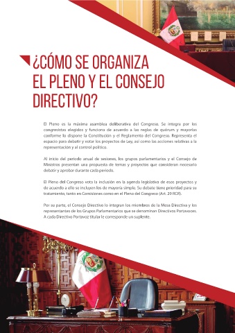 Por su parte, el Consejo Directivo lo integran los miembros de la Mesa Directiva y los 2. Presidir las sesiones del Pleno del Congreso, de la Comisión Permanente y de la Mesa Directiva.