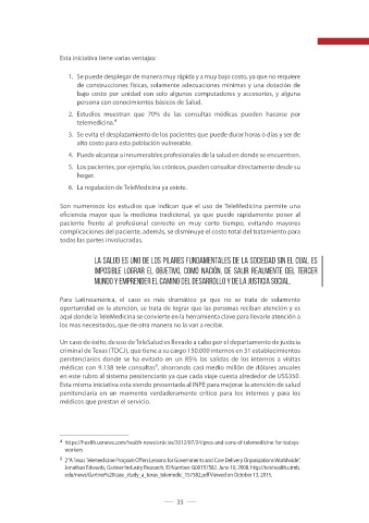 de presupuesto, sino primordialmente de voluntad política. 3. Se evita el desplazamiento de los pacientes que puede durar horas o dias y ser de