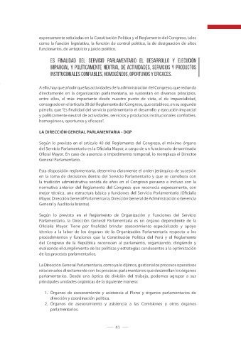 párrafo, que “Es finalidad del servicio parlamentario el desarrollo y ejecución imparcial