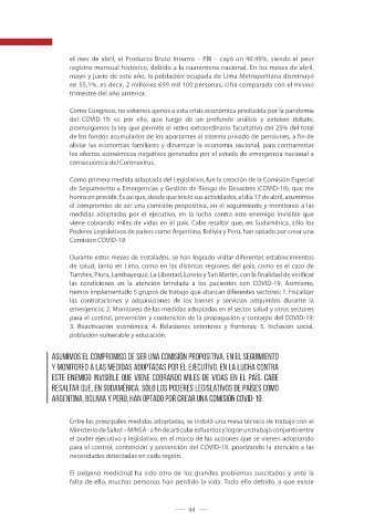 honro en presidir. Es así que, desde que inició sus actividades, el día 17 de abril, asumimos un proyecto de ley, donde no sólo nos preocupamos en la concentración del oxígeno,