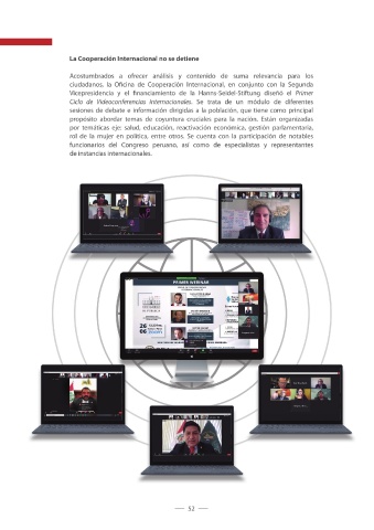 Ciclo de Videoconferencias Internacionales. Se trata de un módulo de diferentes de forma remota desde que inició el Estado de Emergencia debido a la pandemia