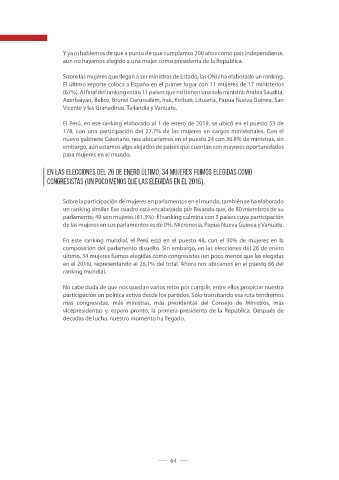 parlamento, 49 son mujeres (61.3%). El ranking culmina con 3 países cuya participación