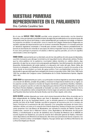 José Faustino Sánchez Carrión, Bernardo Alcedo, José de la Torre Ugarte, entre otros. Asimismo, para que ellas puedan participar, hubo que modi car instituciones políticas
