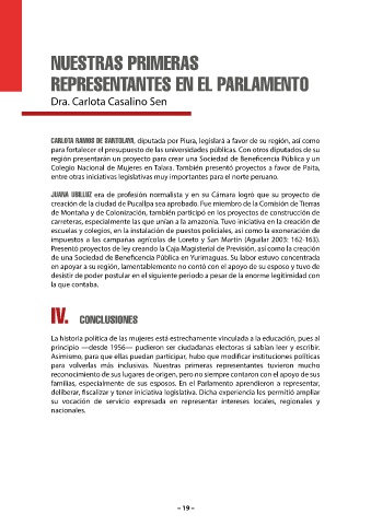 José Faustino Sánchez Carrión, Bernardo Alcedo, José de la Torre Ugarte, entre otros. Asimismo, para que ellas puedan participar, hubo que modi car instituciones políticas