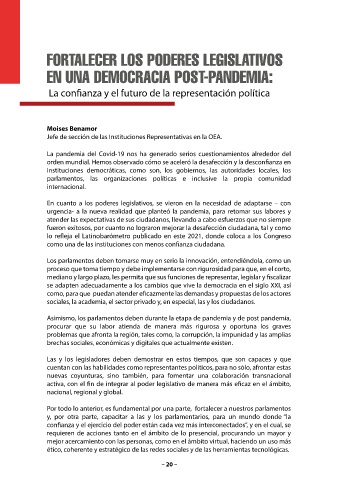 Asimismo, los parlamentos deben durante la etapa de pandemia y de post pandemia,
